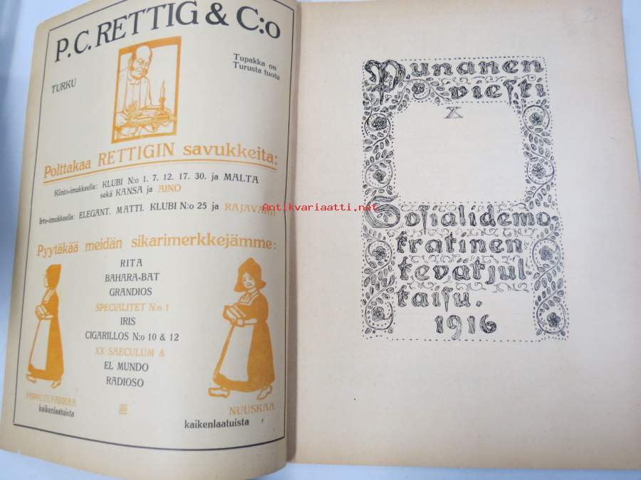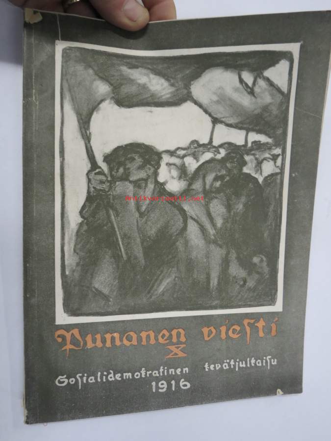 Punanen Viesti (Punainen wiesti) 1916 - Sosialidemokraattinen kevätjulkaisu, propagandistinen, osin tosipohjaista tekstiä, osin kaunokirjallista, kuvitusta