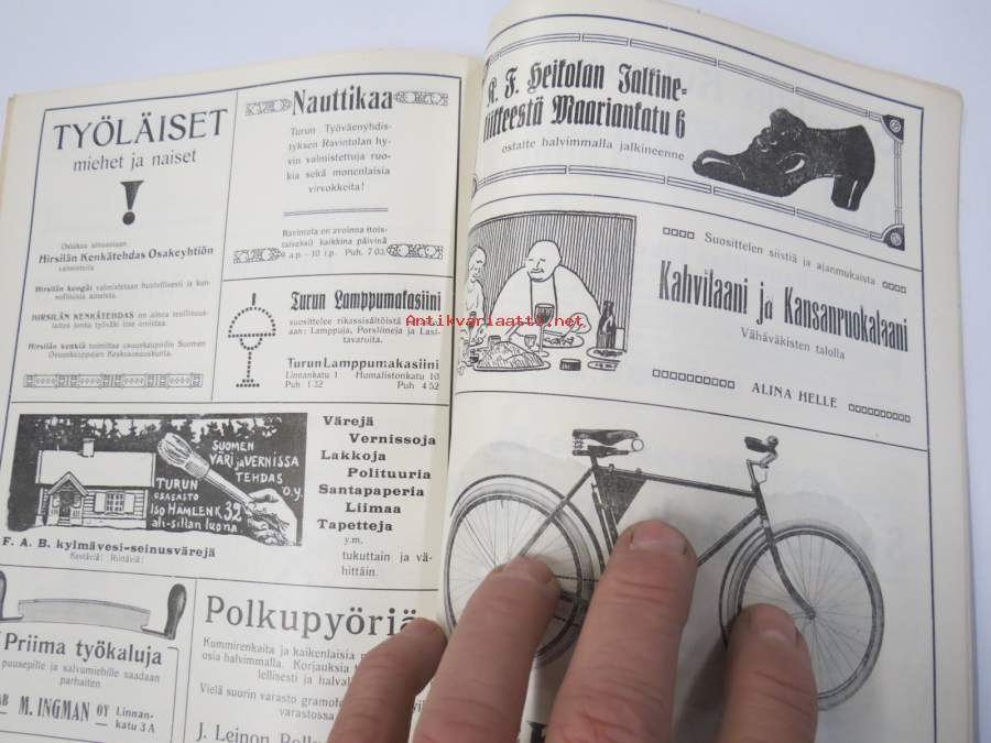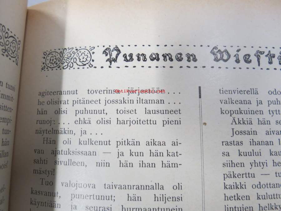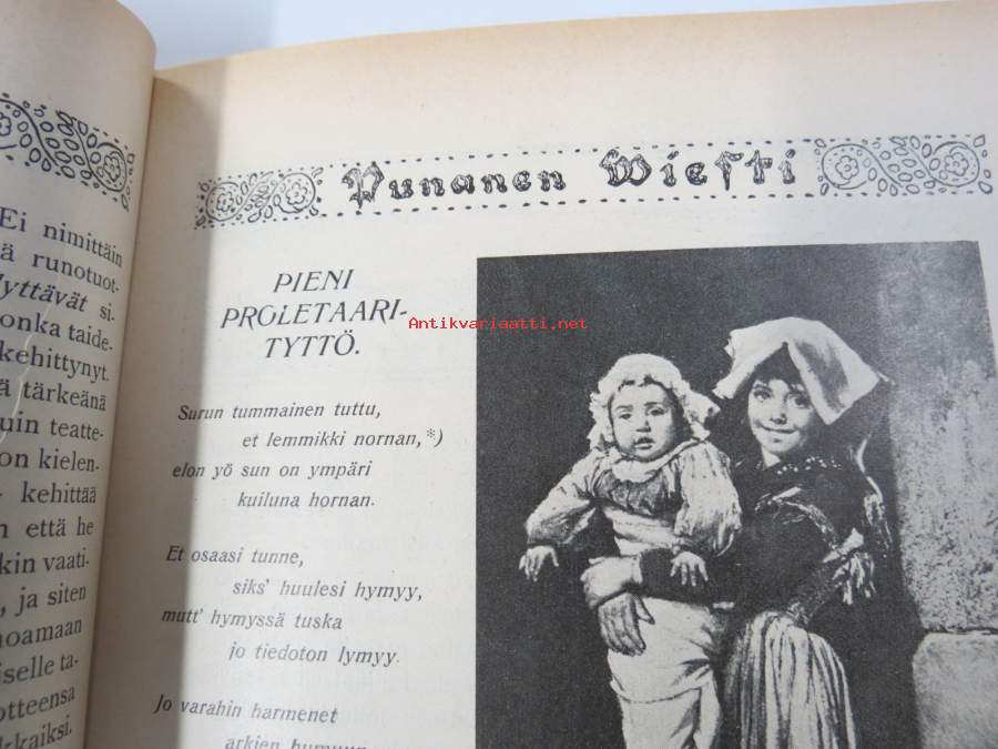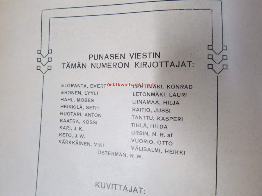 Punanen Viesti (Punainen wiesti) 1913 - Sosialidemokraattinen kevätjulkaisu, propagandistinen, osin tosipohjaista tekstiä, osin kaunokirjallista, kuvitusta