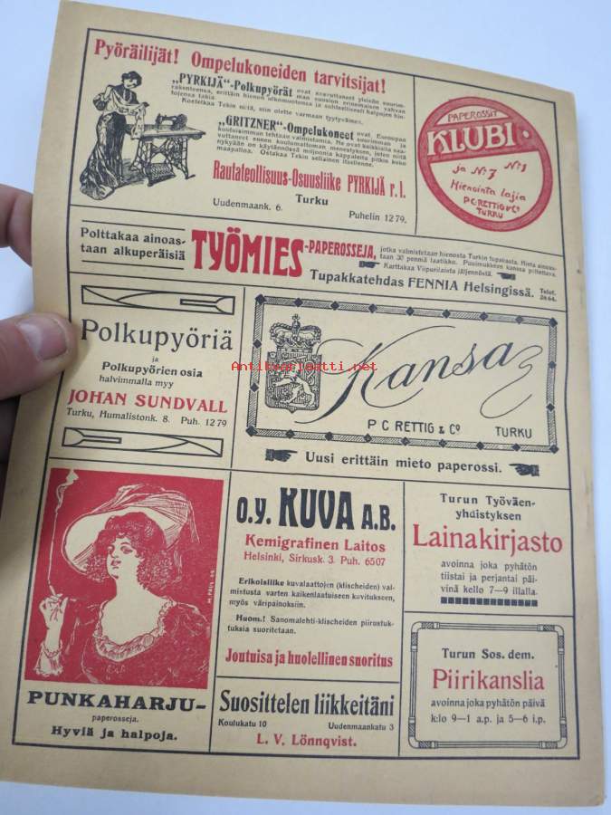 Punanen Viesti (Punainen wiesti) 1913 - Sosialidemokraattinen kevätjulkaisu, propagandistinen, osin tosipohjaista tekstiä, osin kaunokirjallista, kuvitusta
