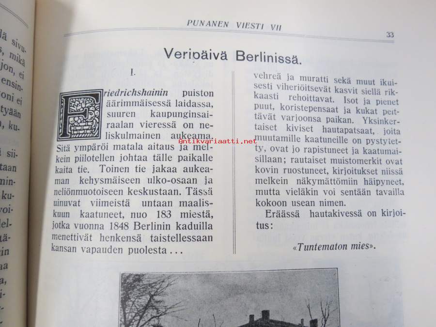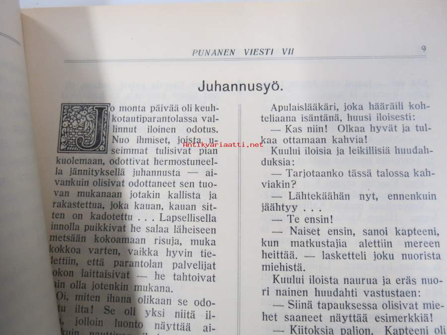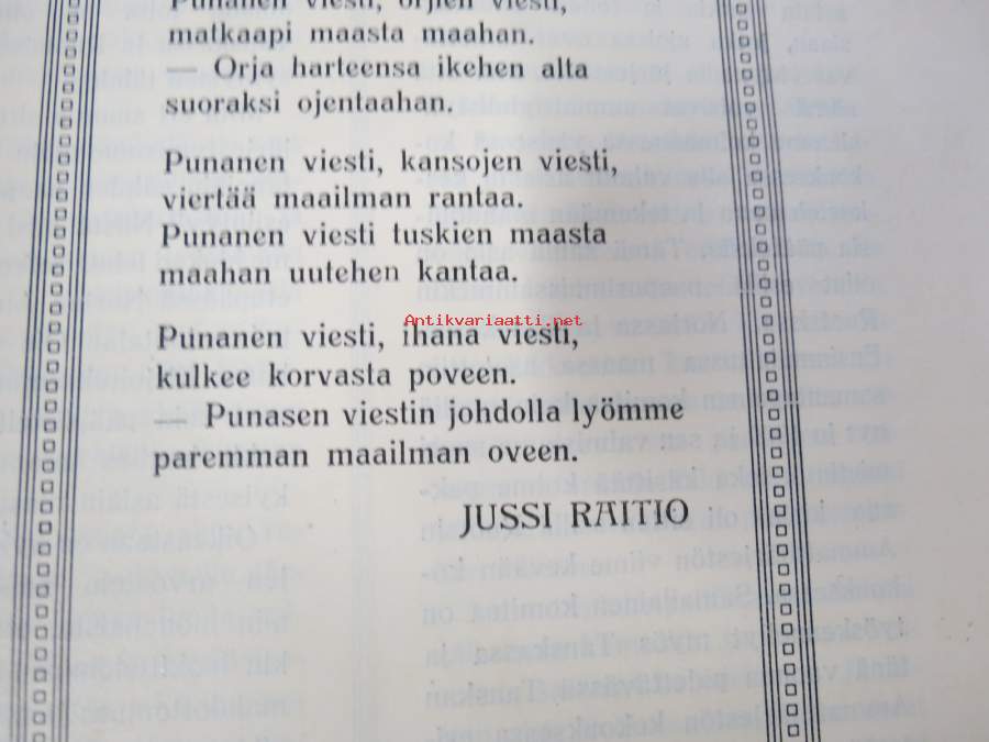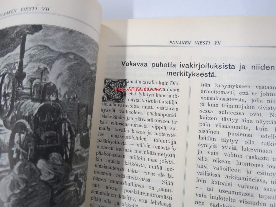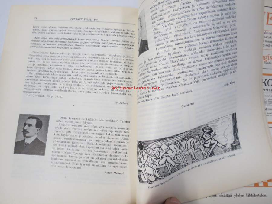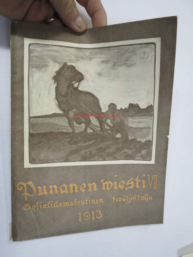 Punanen Viesti (Punainen wiesti) 1913 - Sosialidemokraattinen kevätjulkaisu, propagandistinen, osin tosipohjaista tekstiä, osin kaunokirjallista, kuvitusta