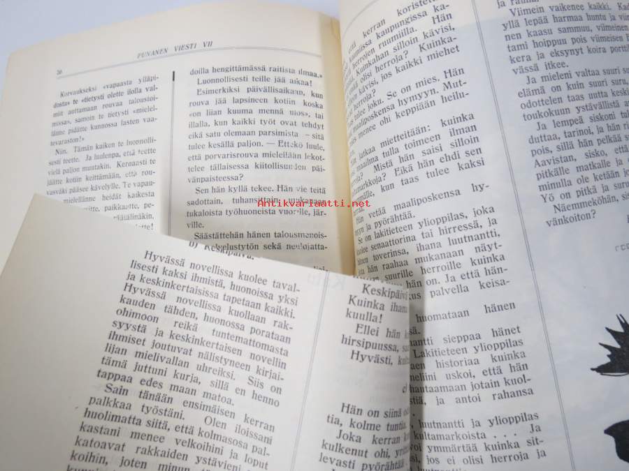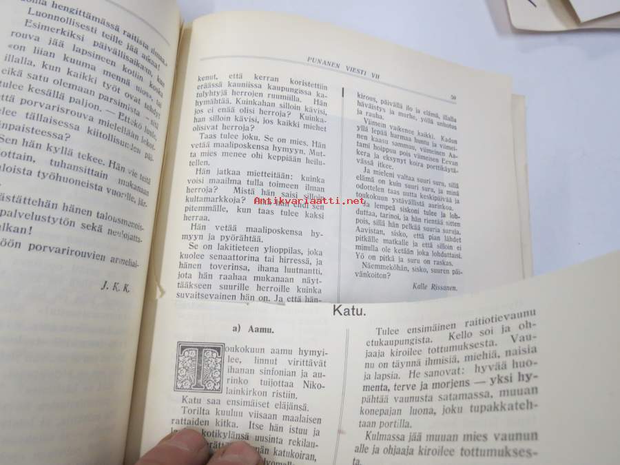 Punanen Viesti (Punainen wiesti) 1920 - Sosialidemokraattinen kevätjulkaisu, propagandistinen, osin tosipohjaista tekstiä, osin kaunokirjallista, kansikuvitus