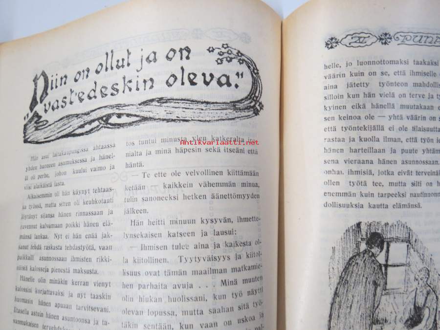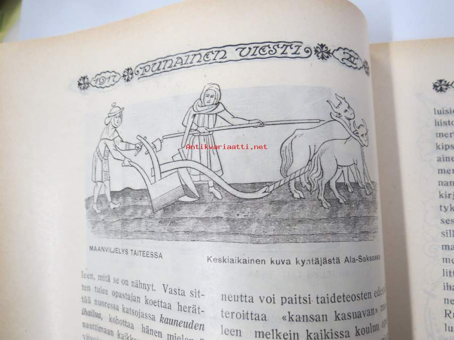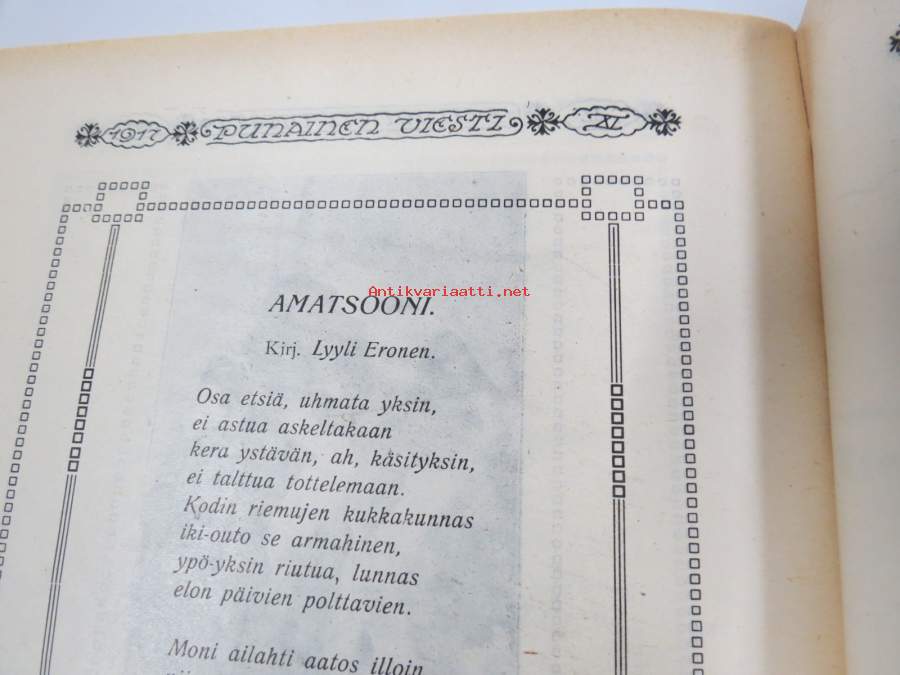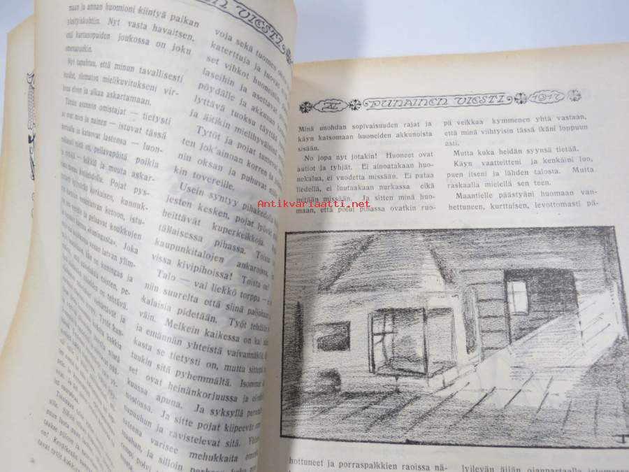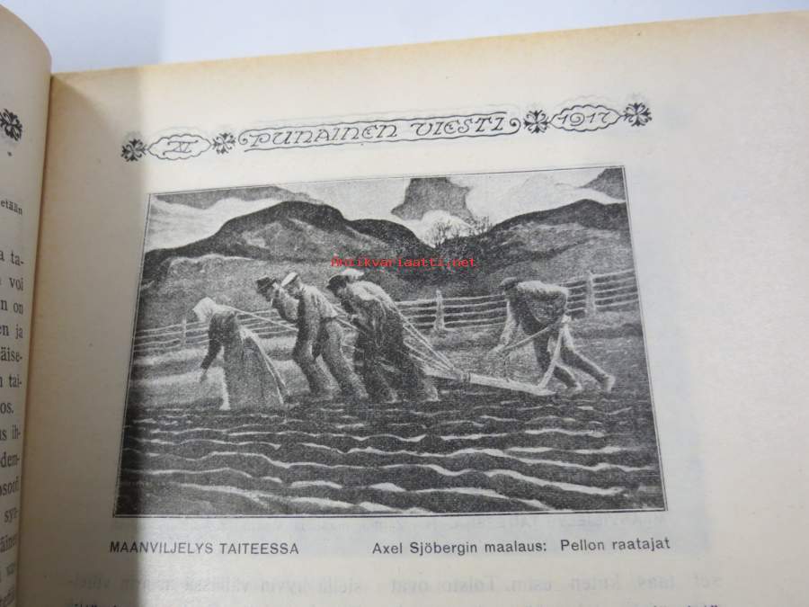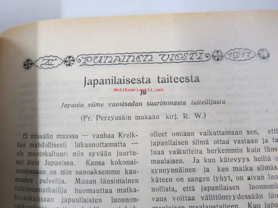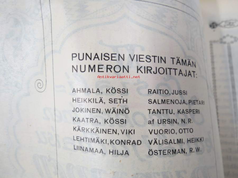 Punanen Viesti (Punainen wiesti) 1913 - Sosialidemokraattinen kevätjulkaisu, propagandistinen, osin tosipohjaista tekstiä, osin kaunokirjallista, kuvitusta