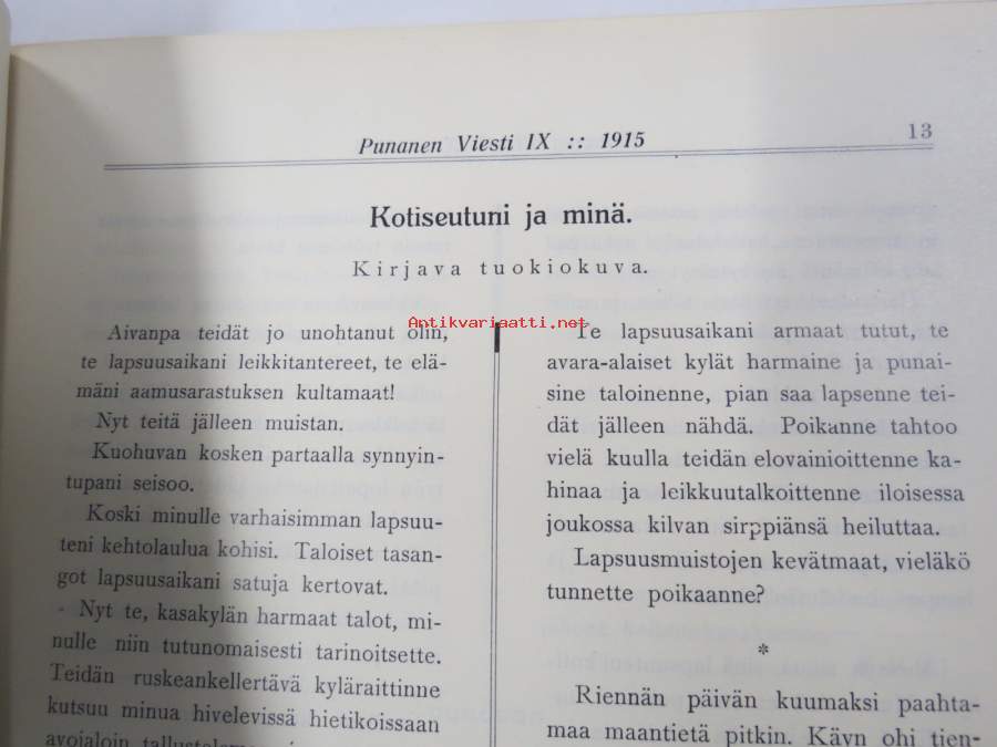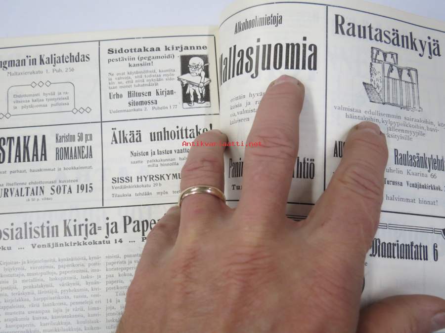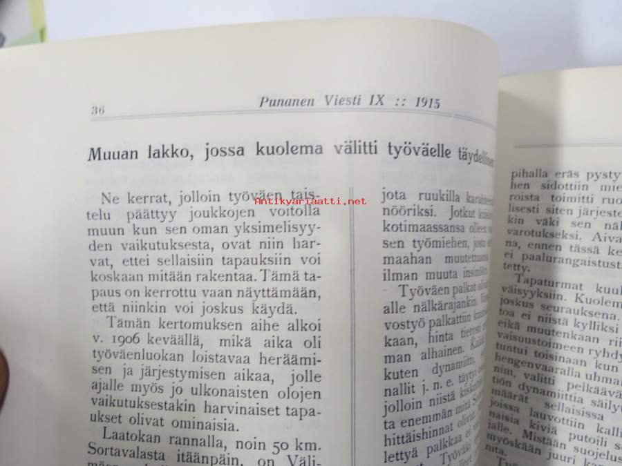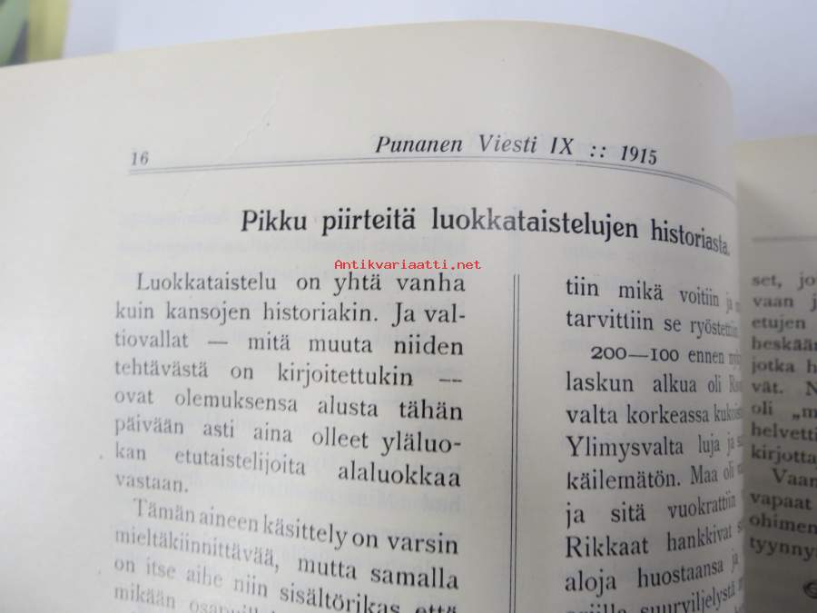 Punanen Viesti (Punainen wiesti) 1915 - Sosialidemokraattinen kevätjulkaisu, propagandistinen, osin tosipohjaista tekstiä, osin kaunokirjallista, kuvitusta