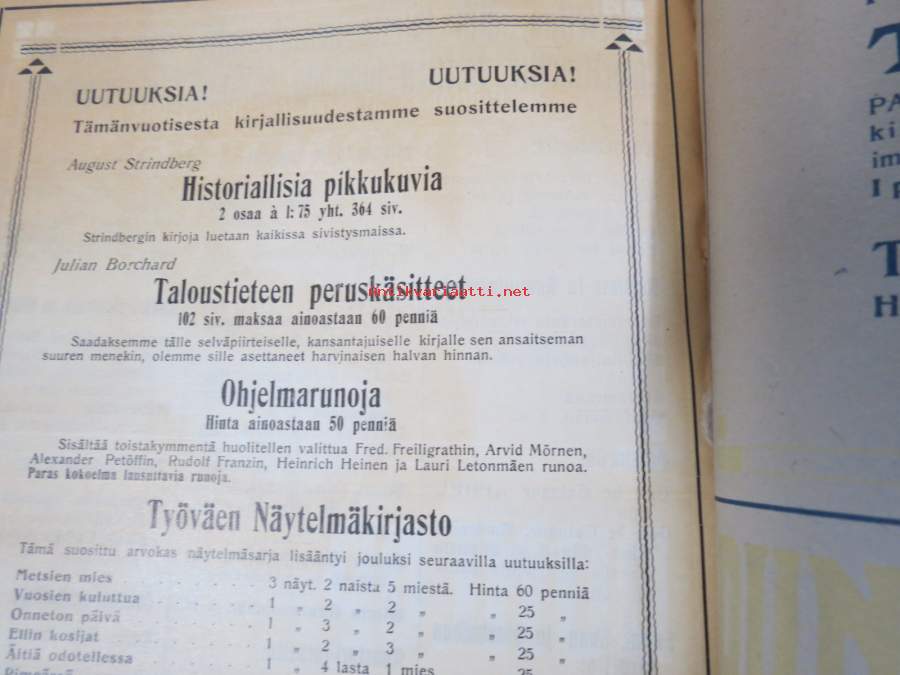 Punanen Viesti (Punainen wiesti) 1913 - Sosialidemokraattinen kevätjulkaisu, propagandistinen, osin tosipohjaista tekstiä, osin kaunokirjallista, kuvitusta