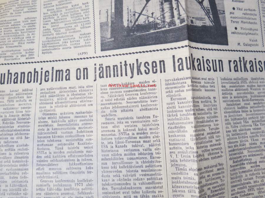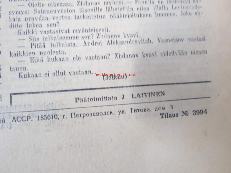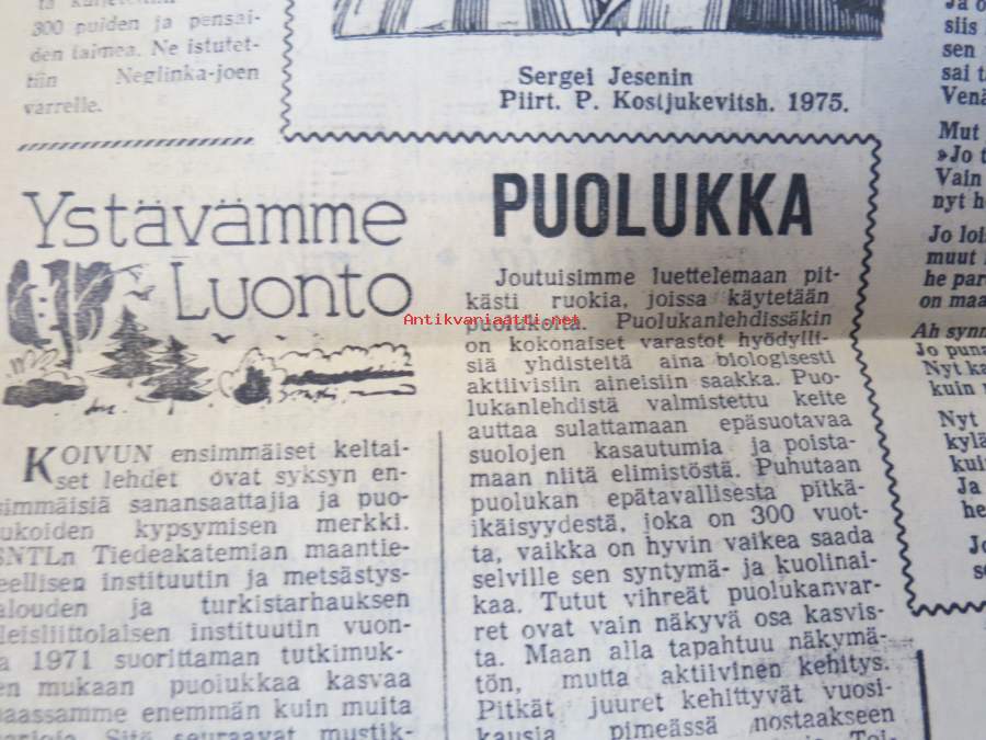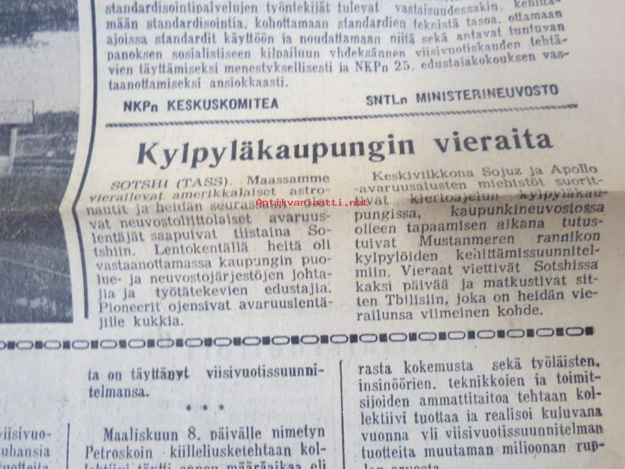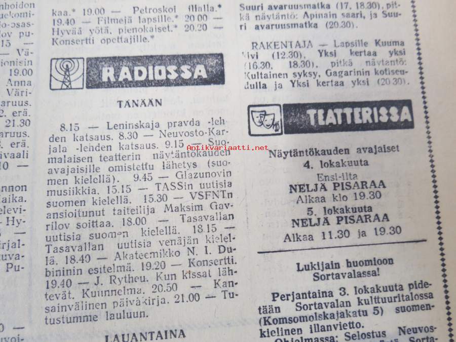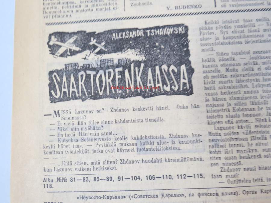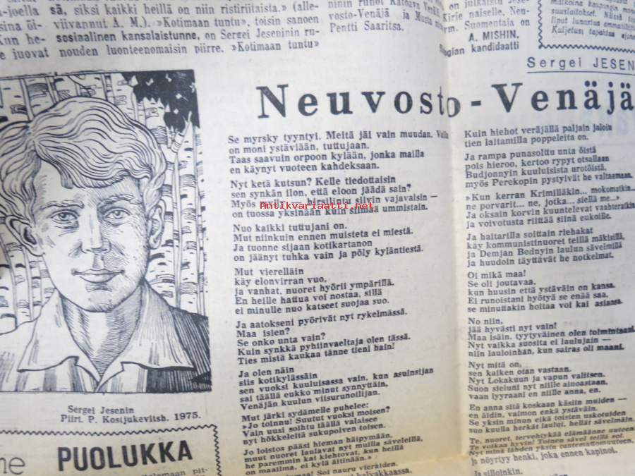 Neuvosto-Karjala, 3.10.1975 (ilmestynyt Petroskoissa); Pääjärvi - ystävyyden rakennustyömaa, Ansiomerkki "Työuljuudesta", Sulo Jjuntunen - omaperäinen maisemamaalari