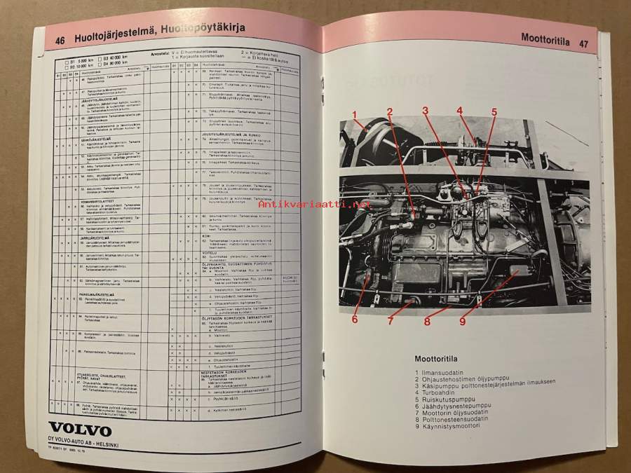 Volvo Servicehandbook - Reparation och underhåll Avd. 1 (17) Volvo serviceprogram 240, 260, 340, 66 1975-82 -korjaamokirjasarjan osa ruotsinkielellä
