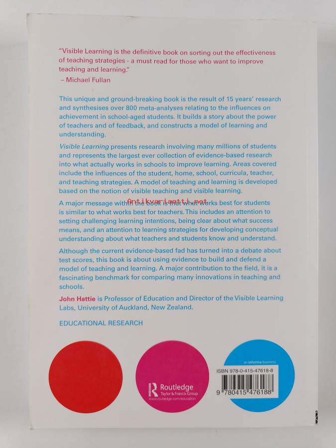Visible learning : a synthesis of over 800 meta-analyses relating to achievement