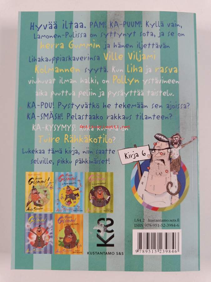 Muu(t) tekijä(t): Jaana Kapari-Jatta, David TazzymanSarja: Herra Gummi Kirja 6Alkuteos: What's for dinner, Mr Gum?Asiasanat: konfliktit, poikkeava käyttäytyminen, kosto, pikkukaupungit, mellakat, hullunkurisuus