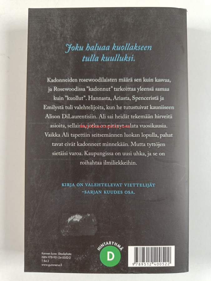 Muu(t) tekijä(t): Sirpa ParviainenSarja: Valehtelevat viettelijät 6Alkuteos: KillerAsiasanat: kaupungit, tytöt, valehtelu, ystävät, katoaminen, salaisuudet, vainoaminen, petollisuus