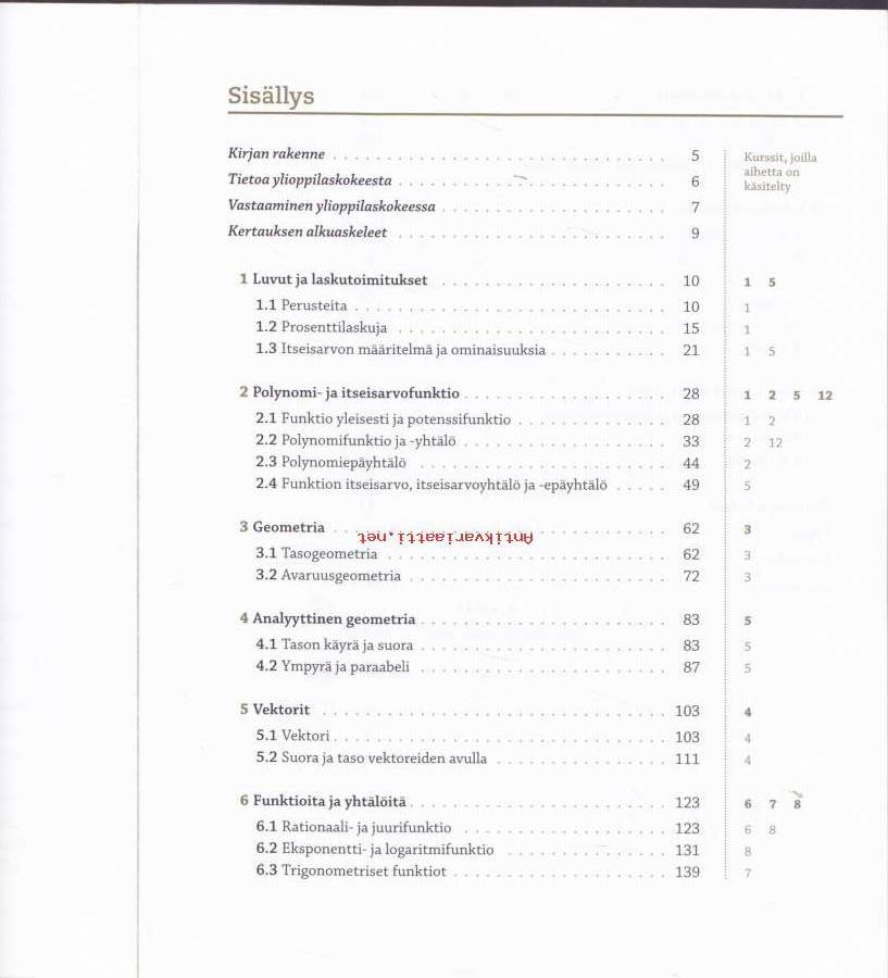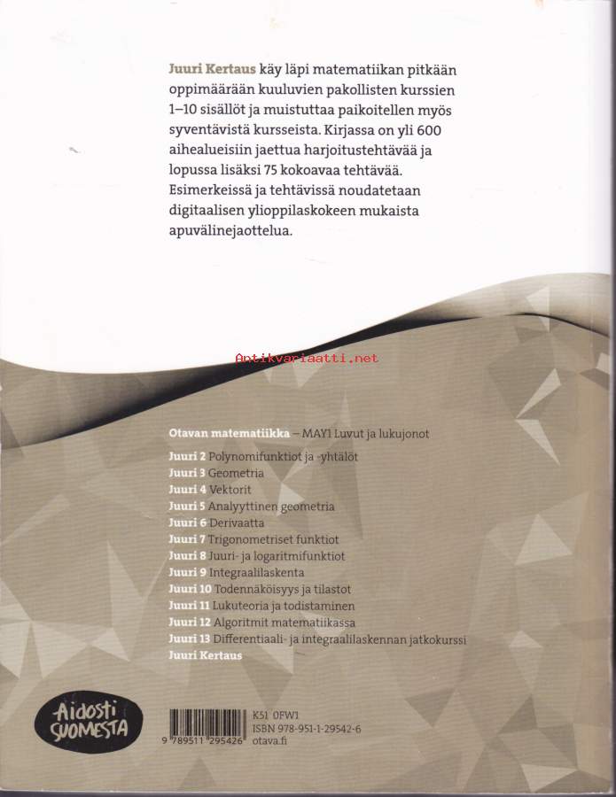 JUURI kertaus, 2018. Kirja käy läpi matematiikan pitkään oppimäärään kuuluvien pakollisten kurssien 1-10 sisällöt.