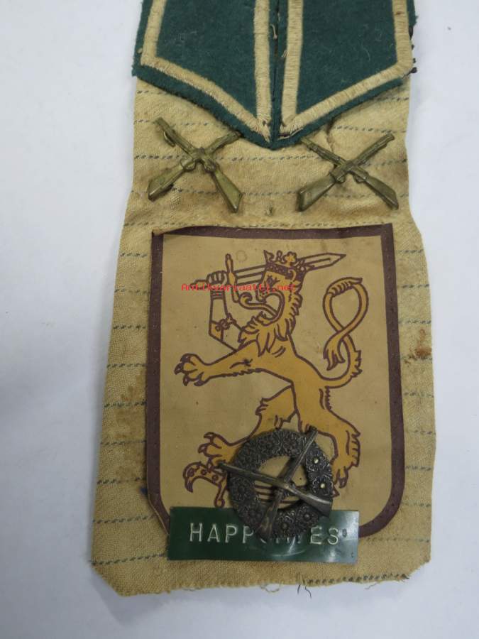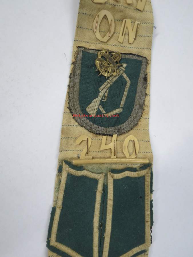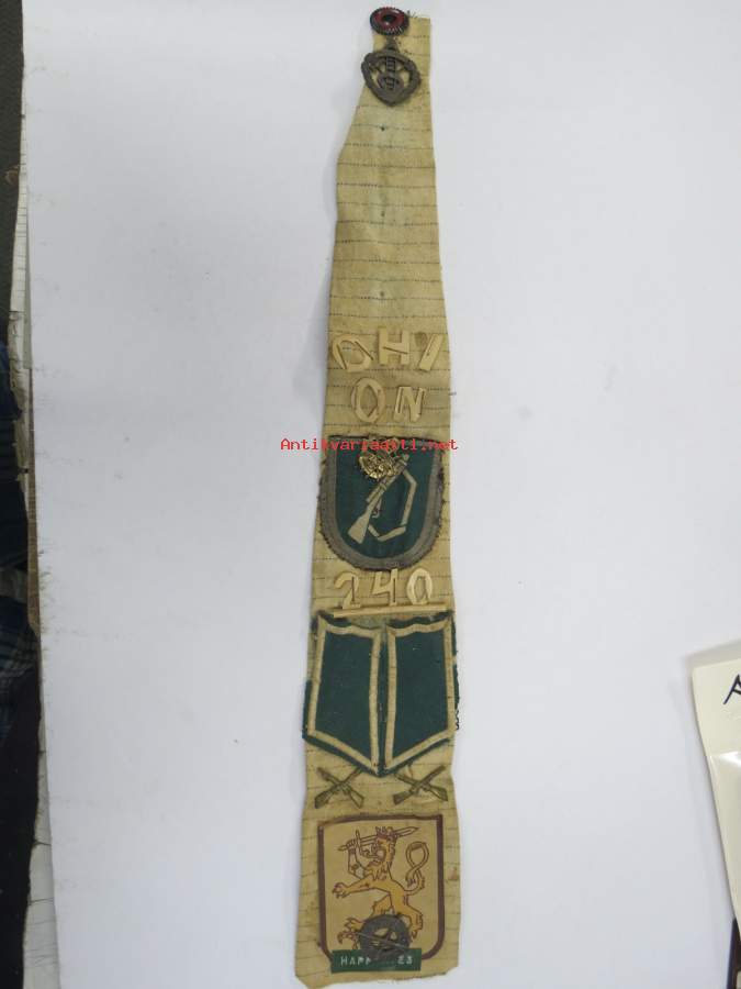 Ohi on 240 -solmio, jalkarätistä ja merkeistä yms. sommiteltu muisto varusmiesajalta, mukana Laitilan VPK & Yleinen Palokuntaliitto -merkit