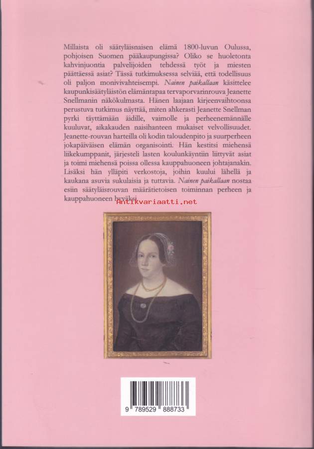 Nainen paikallaan, 2023. Oululaisen tervaporvarinrouva Jeanette Snellmanin (1817-1978) elämäntapa. Sarja: Studia Historica Septentrionalia 89