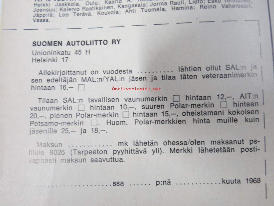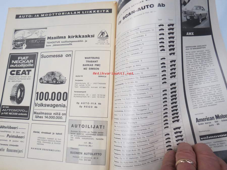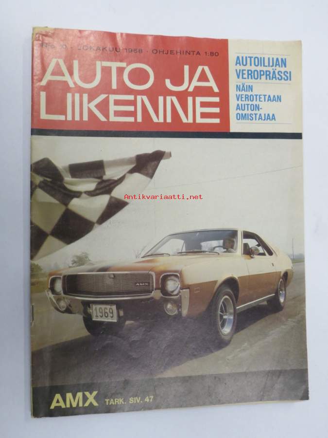 Auto ja Liikenne 1968 nr 10, sis. mm. seur. artikkelit / kuvat / mainokset; Kansikuva AMX, Champion Turbotulppa, Thai International, Autoilijan veroprässi, Austin