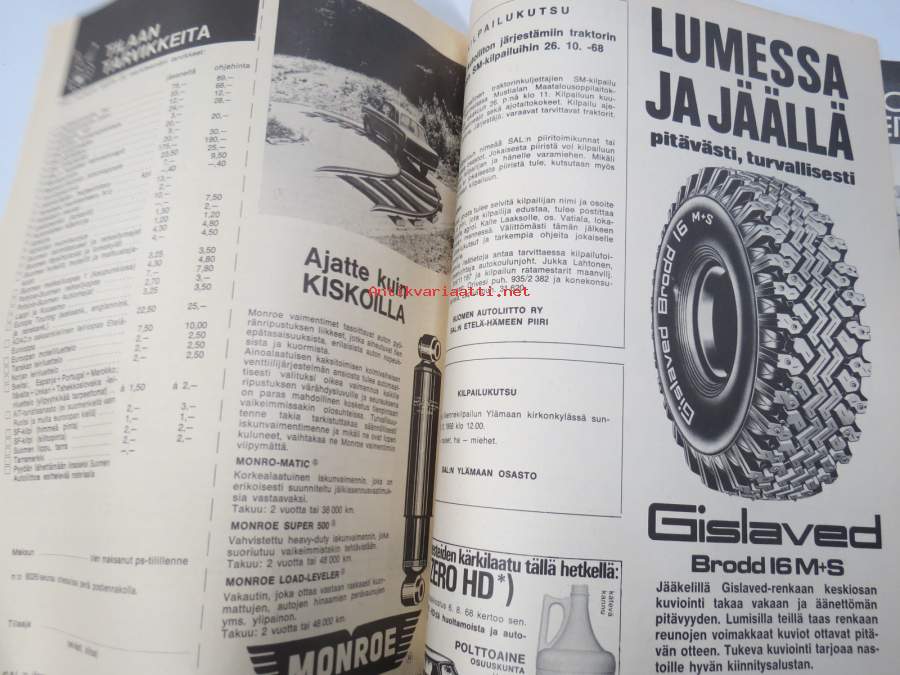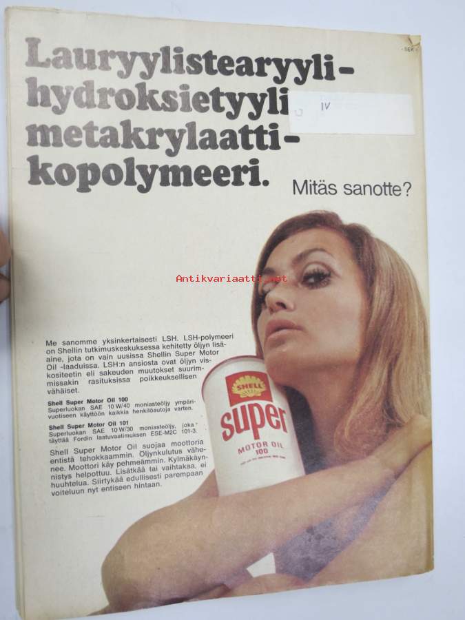 Auto ja Liikenne 1968 nr 10, sis. mm. seur. artikkelit / kuvat / mainokset; Kansikuva AMX, Champion Turbotulppa, Thai International, Autoilijan veroprässi, Austin 1300, Mazda 1500 de luxe, Rengastietoa, Ford vuodelta 1903, Auto talvikuntoon - autokemikaalit - hyvä kuvitus purkeista ja pulloista, Shell Super, ym. 21 x 30 cm.
