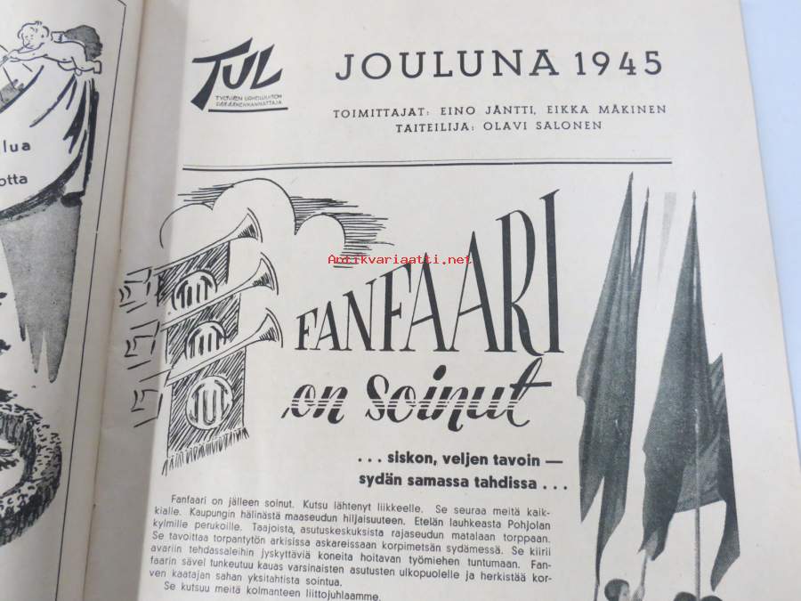 TUL Jouluna 1945 -joululehti, kansikuva Tapio Rautavaara