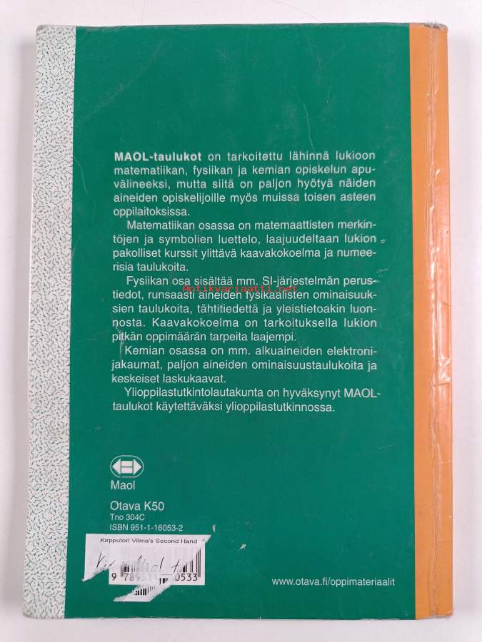 Tyydyttävä. Tarkempi kuntoluokka: K2- ; Hieman nuhruisuutta, hieman käytön jälkeä kansissa, kontaktimuovipäällystys