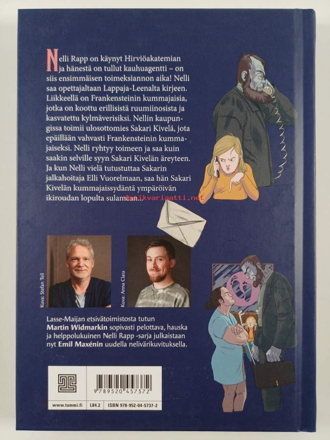 Sarja: Nelli RappAlkuteos: Nelly Rapp, Monsteragent. FrankensteinarenAsiasanat: tunteet, kauhu, agentit, hirviöt, salaisuudet, toimeksianto, ulosottomiehet
