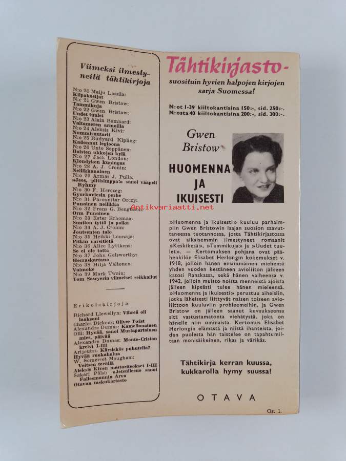 Huomenna on kaikki paremmin : romaani / Annemarie Selinko ; suom. J. Torppa. ExLibris Eva Nikulainen
