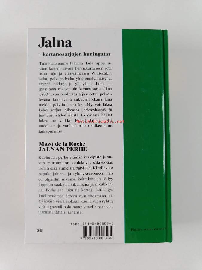 Mazo De la Roche -paketti (12 kirjaa) : Jalnan veljekset ; Jalnan miehet palaavat ; Jalnan isäntä ; Jalnan perhe ; Jalnan kotiopettajar ; Jalnan nuori Renny ; Jal...