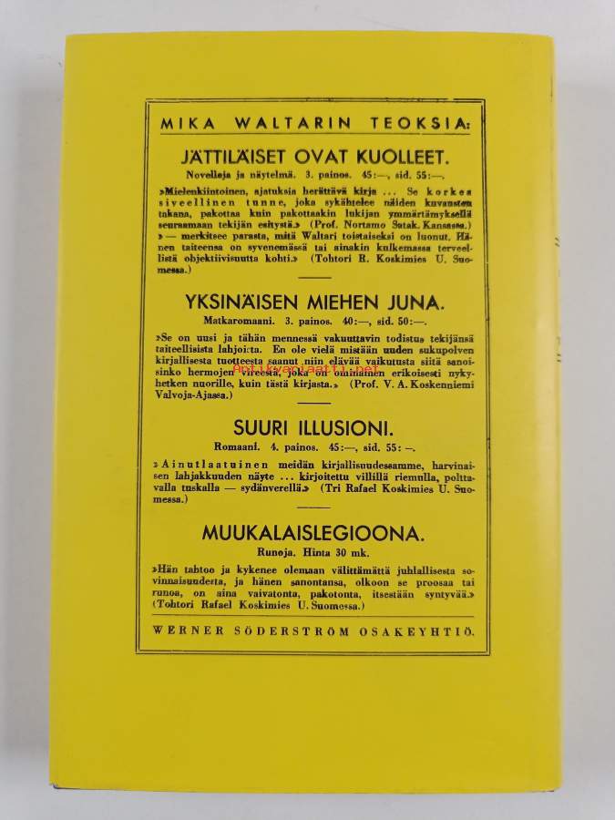 Hyvä. Tarkempi kuntoluokka: K3+ ; Pienoista kolhua selkämyksen alareunassa, selkämyksessä hieman vinoutta. Kansipaperin kunto: erinomainen tai virheetön (korkeintaan hyvin pientä käytön jälkeä)