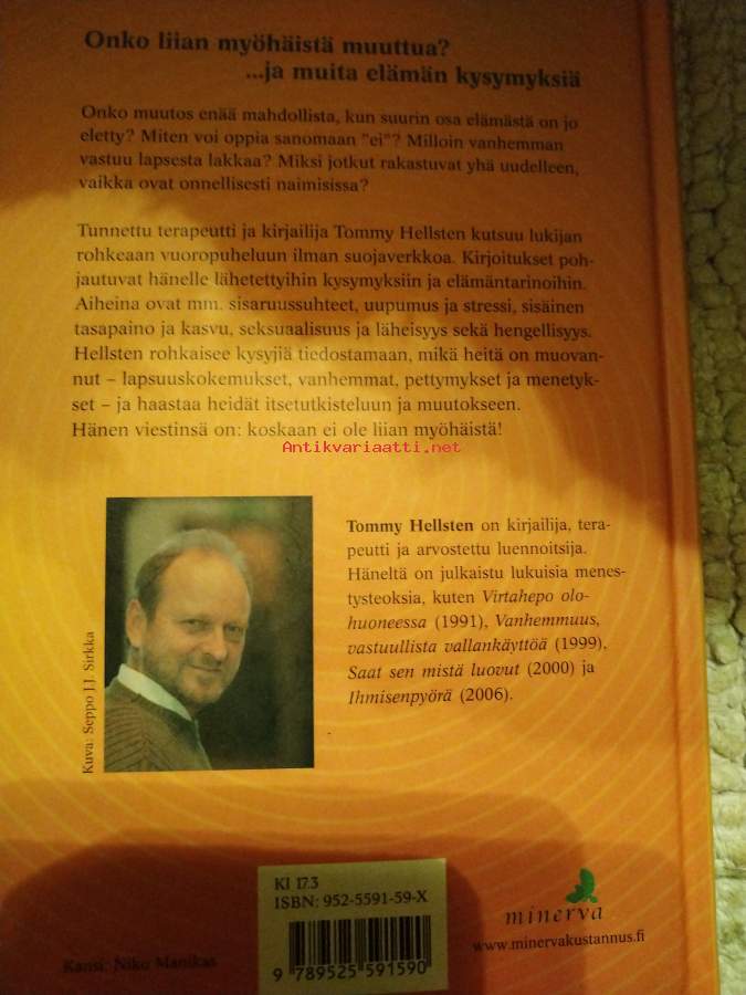 Muu(t) tekijä(t): Salla Korpela, Jorma AspegrenMerkinnät: exlibris: Eeva LemmetyinenAlkuteos: Är det försent att förändras... och andra frågor ur livet