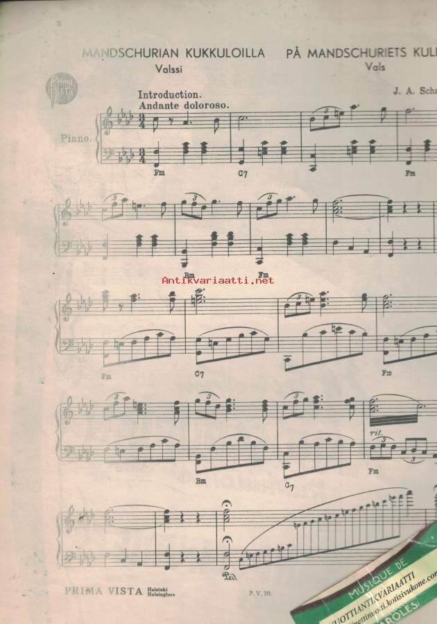 Mandschurian kukkuloilla pianolle/På Mandschuriets kullar för piano/J. A. Schatrow