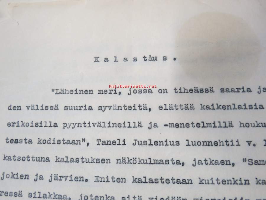 Kalastus. Läherinen mewri, jossa on tiheässä saaria ja luotoja... -tunnistamaton, päiväämätön, painamaton opinnäyte / käsikirjoitus, kalastusaihe