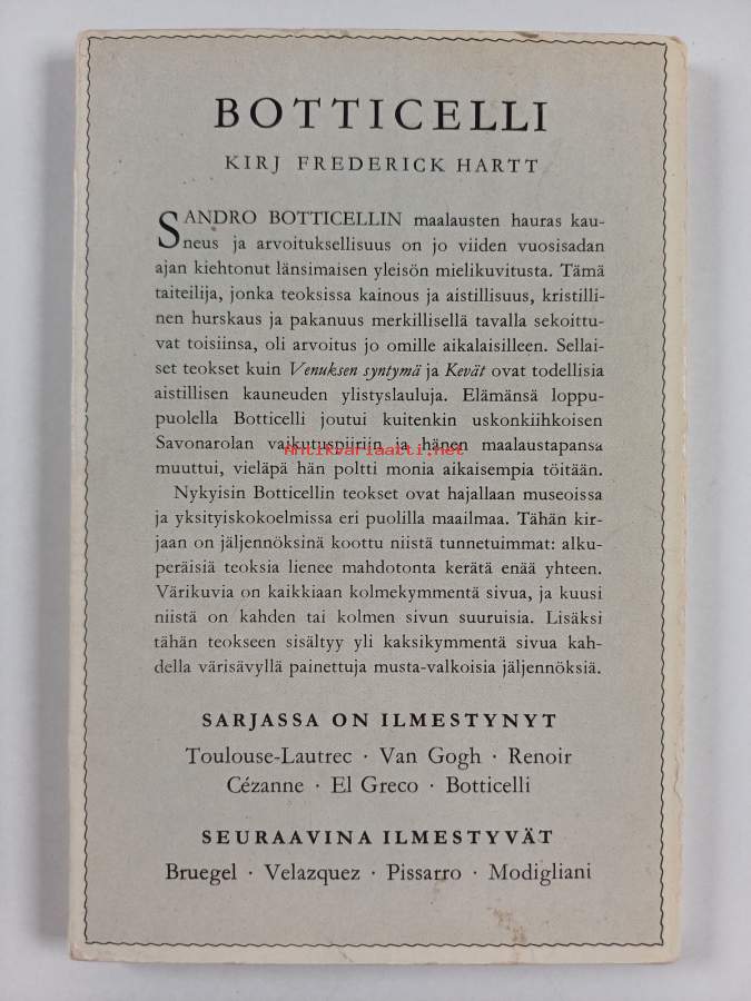Sandro Botticelli - Maestri dell' Arte Italiana, 2000. Italian taiteen mestarit -sarja. Kuvateos (isokokoinen 28 x 32 cm) taitelijan elämästä/ taiteesta.