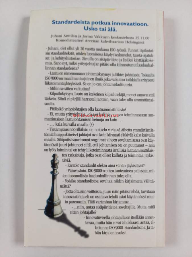 Muu(t) tekijä(t): Jorma VakkuriAsiasanat: yritykset, johtaminen, liiketoiminta, laatu, yritysjohtajat, laatujohtaminen, laatujärjestelmät, laadunhallinta, standardit