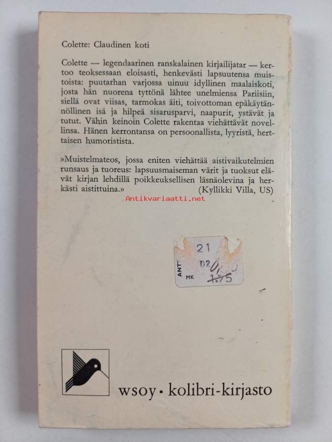 Muu(t) tekijä(t): Maija LehtonenSarja: Eurooppa-sarja, toinen kymmenvalikoima [9; Eurooppa-sarjaAlkuteos: La maison de Claudine