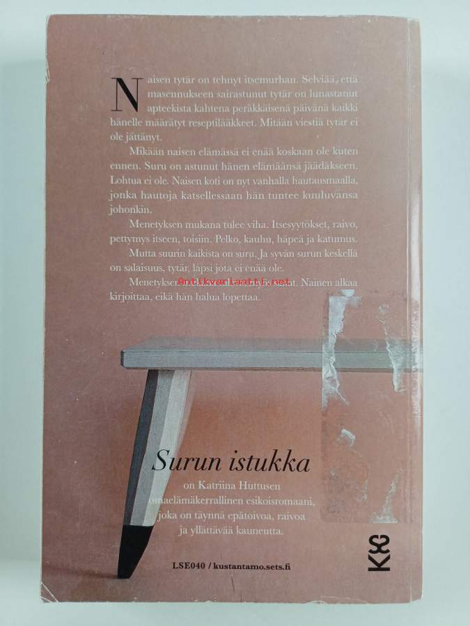 Hyvä. Tarkempi kuntoluokka: K3- ; Hieman kulumaa kansissa, selkämyksessä hieman vinoutta, selkämyksessä lukutaittumaa, takana hintalapun jäämää, joidenkin sivujen kulmia taitettu