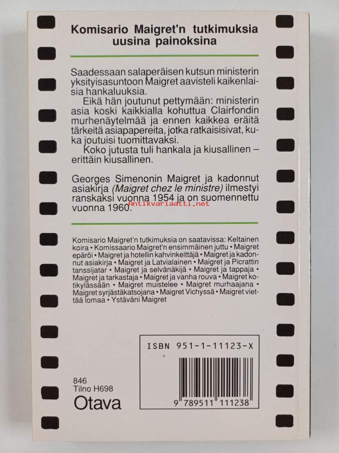 Muu(t) tekijä(t): Irmeli NykänenAlkuteos: Maigret chez le ministre