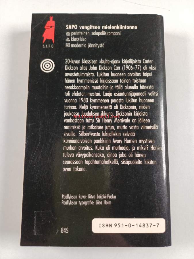 Muu(t) tekijä(t): Eero AhmavaaraSarja: Sapo 12Alkuteos: The Judas window