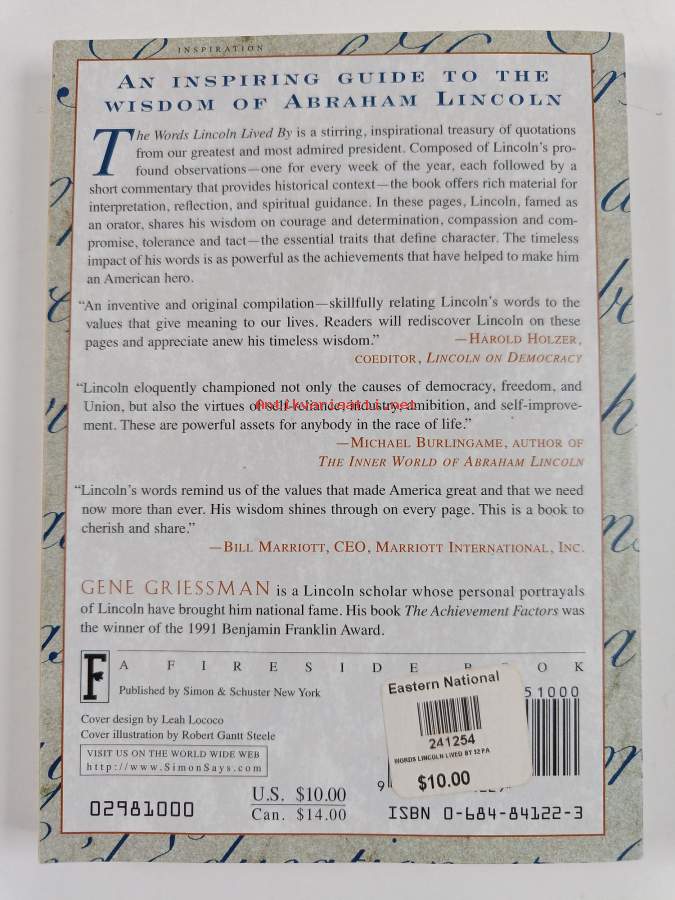 The Words Lincoln Lived By - 52 Timeless Principles to Light Your Path