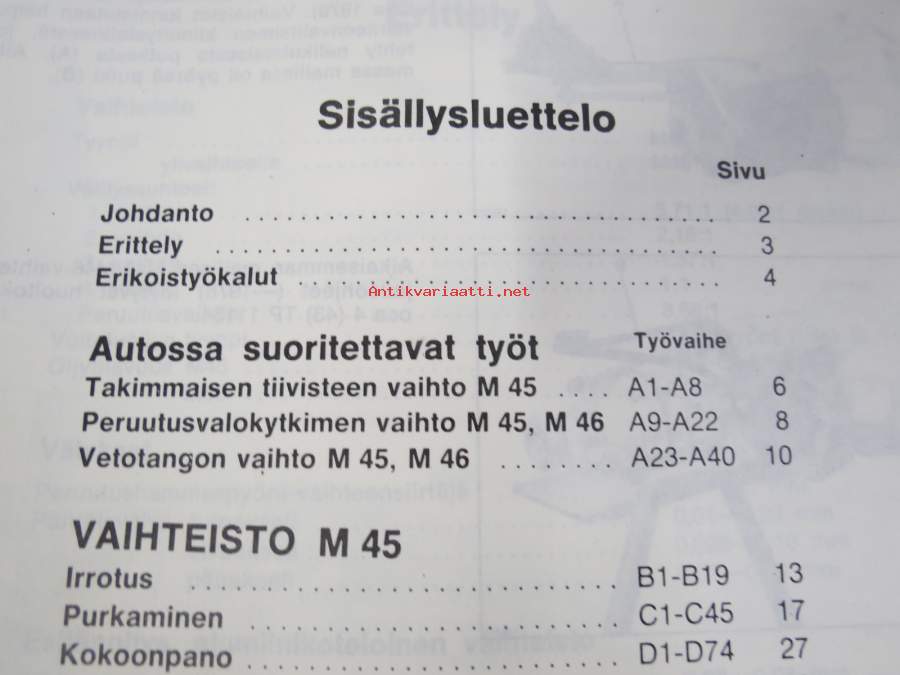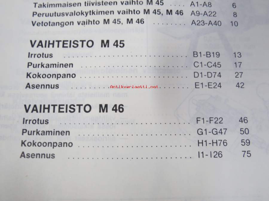 Volvo Huoltokäsikirja Osa 4 (43) Korjausohjeet Vaihteistot M45, M46 1979- -korjaamokirjasarjan osa