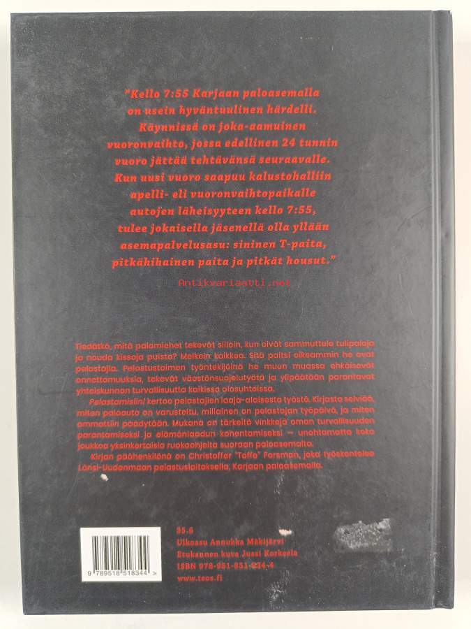 Muu(t) tekijä(t): Christoffer Forsman, Marko MustonenAsiasanat: ruokaohjeet, henkilöhistoria, työkyky, ravitsemus, paloautot, palokalusto, ammatillinen koulutus, palomiehet, varusteet, pelastustoimi, työnkuva, pelastustoiminta, paloasemat, pelastuslaitokset, pelastushenkilöstö