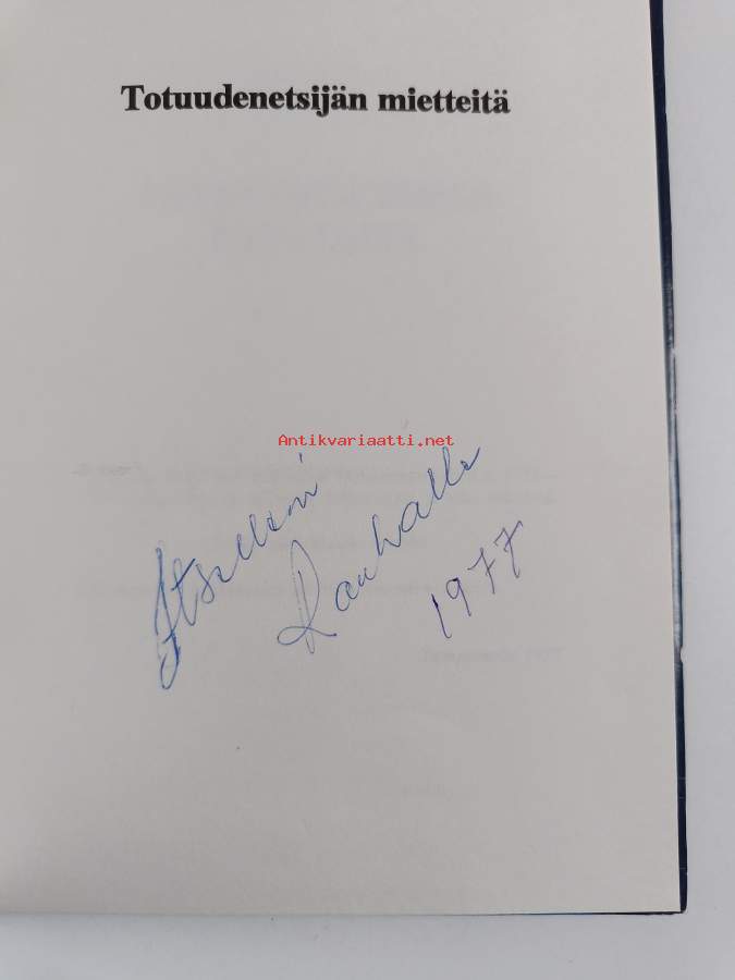 Totuudenetsijän mietteitä : Pohjolan valo ja Kristosofi -aikakauslehdistä v. 1951-1971 kootut... kirjoitukset ja yksi esitelmä (signeerattu, tekijän omiste)