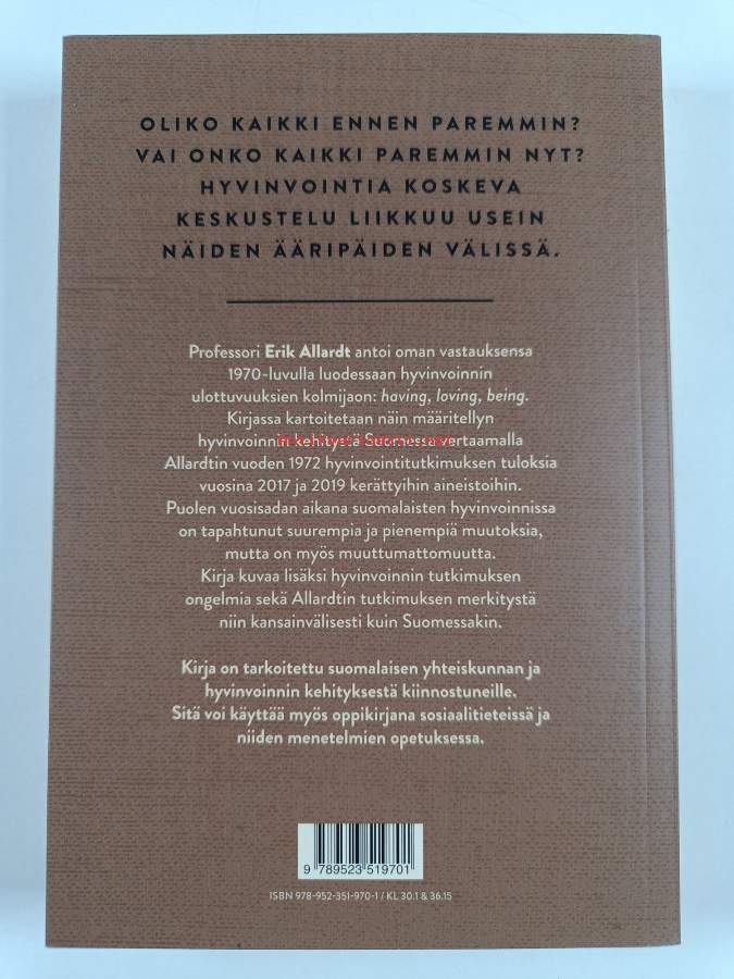 Muu(t) tekijä(t): Harri Melin, Juho Saari ym.Asiasanat: yhteiskuntakehitys, suomalaiset, hyvinvointivaltio, muutos, yhteiskunnallinen muutos, hyvinvointi, tutkimushistoria, yhteiskunta, tutkimusmenetelmät, yhteiskuntatieteet, sosiaali-indikaattorit, sosiaalitieteet, hyvinvointipolitiikka, hyvinvointiala, sosiaalitutkimus, sosioekonomiset tekijät, koettu hyvinvointi