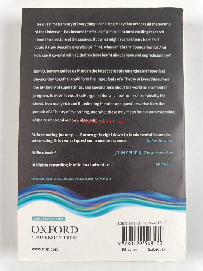 Muu(t) tekijä(t): John D. BarrowAsiasanat: filosofia, kosmologia, teoriat, fysiikka, tieteenfilosofia, kaiken teoria, Science, Physics, Cosmology