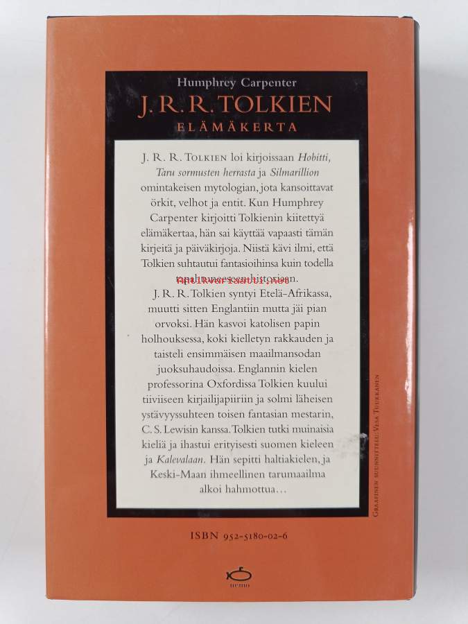 Merkinnät: omistajamerkintä (tarra)Alkuteos: J. R. R. Tolkien : a Biography