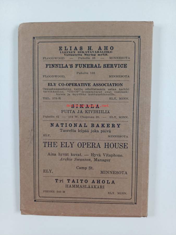 Raittiuskansan kalenteri 1925 julkaistu Hancock´issa, Michigan, USA