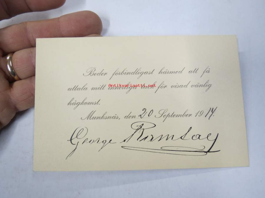 Beder förbindligast härmed..., Munksnäs, den 20 September 1914 - George Ramsay -kiitoskortti, omakätinen nimikirjoitus
