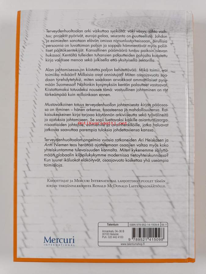 Mustavalkoinen totuus terveydenhuollon johtamisesta (tekijän omiste, signeerattu)