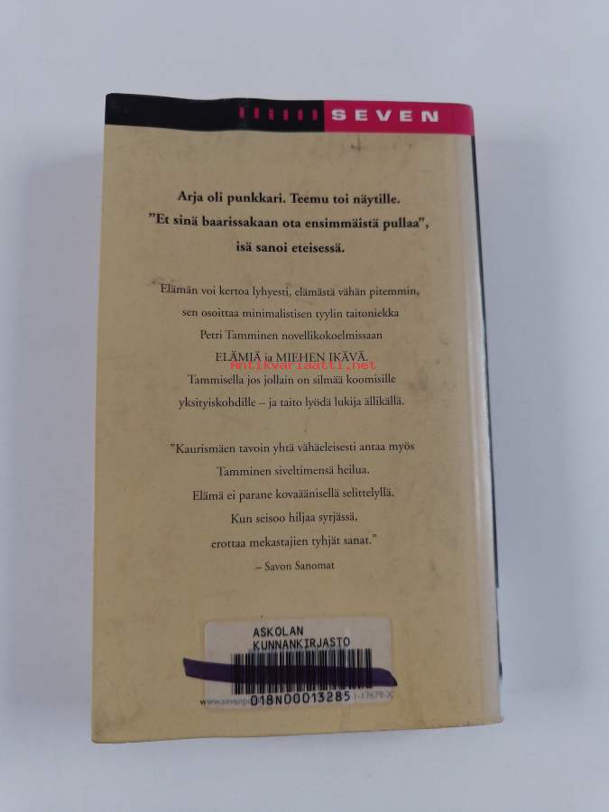 Tyydyttävä. Tarkempi kuntoluokka: K2- ; Hieman kulumaa kansissa, hieman taitejälkeä, selkämyksessä hieman vinoutta, kontaktimuovipäällystys, kirjaston poistokirja