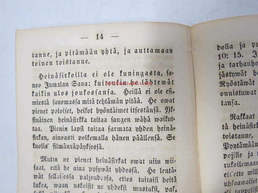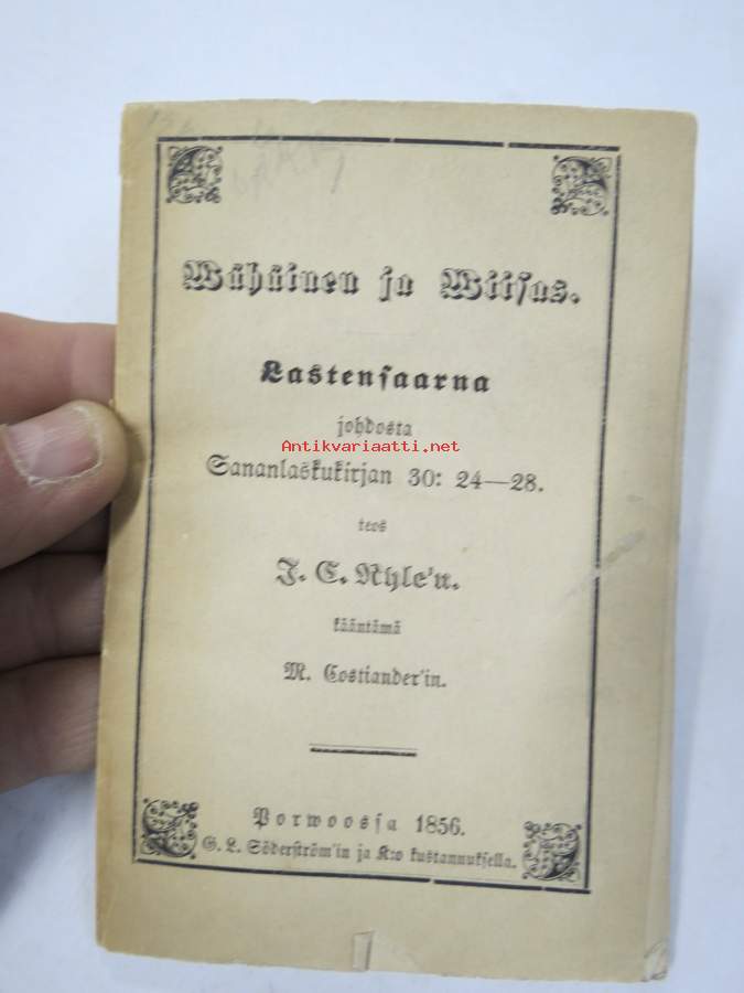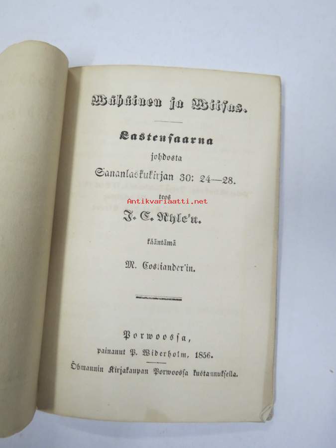 Wähäinen ja Wiisas. Lastensaarna johdosta Sananlaskukirjan 30: 24-28. teos J.C. Ahle`n. kääntämä M. Costiander´in. Porwoossa 1856