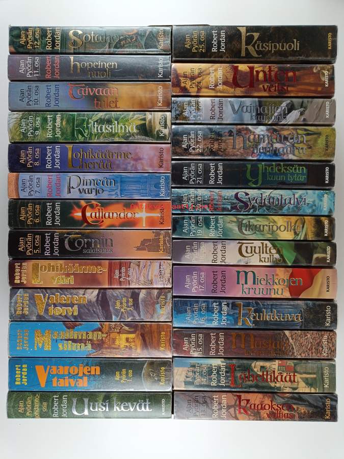 Koko nimi: Ajan pyörä 1-25 ja johdanto-osa ; Vaarojen taival ; Maailmansilmä ; Valeren torvi ; Lohikäärmeviiri ; Tornin salaisuus ; Callandor ; Pimeän varjo ; Lohikäärme herää ; Kultasilmä ; Taivaan tulet ; Hopeinen nuoli ; Sotaherra ; KaaoksenSarja: Ajan pyörä 1