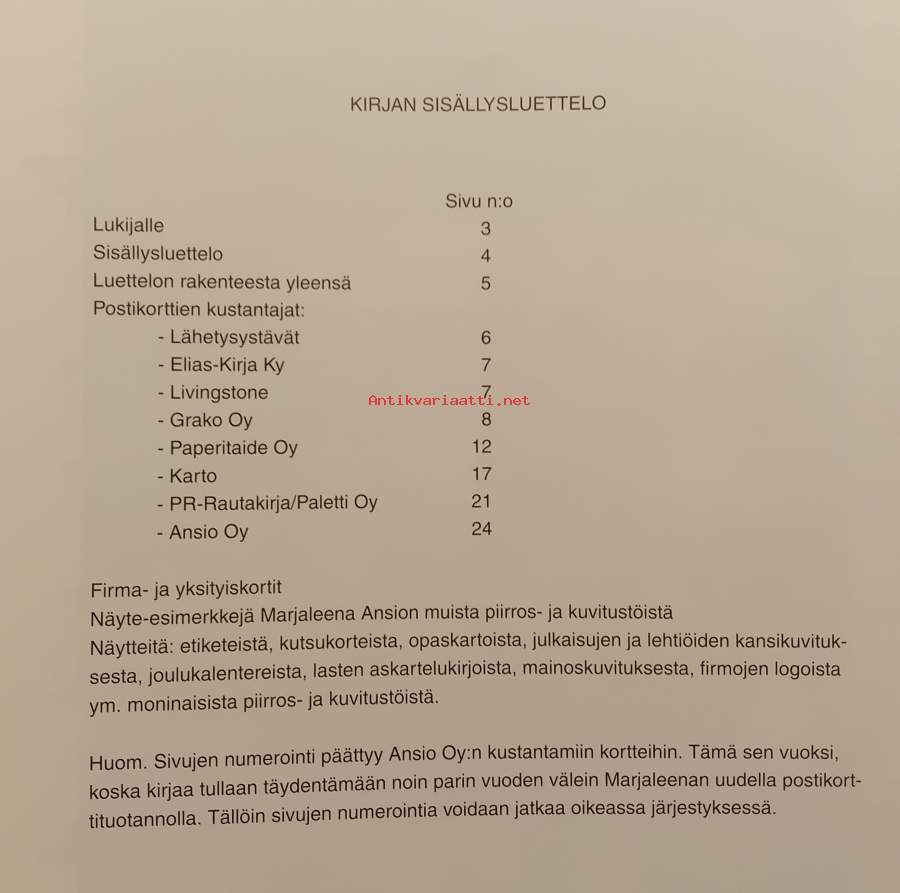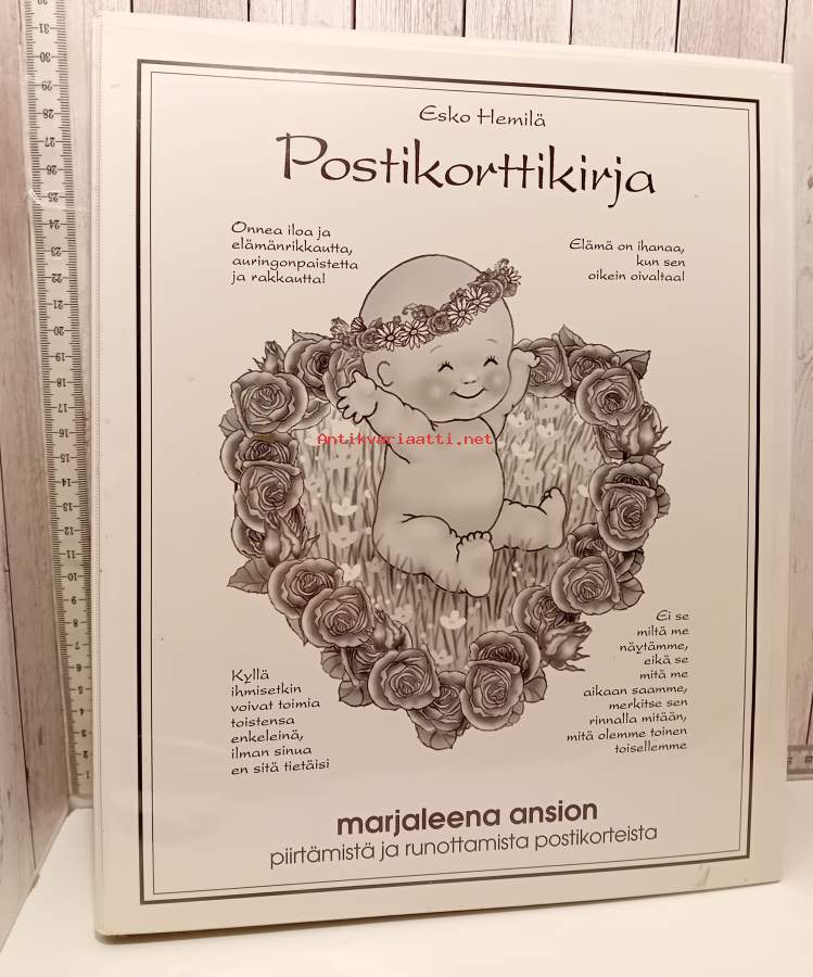 Postikorttikirja Marjaleena Ansion piirtämistä ja runottamista postikorteista