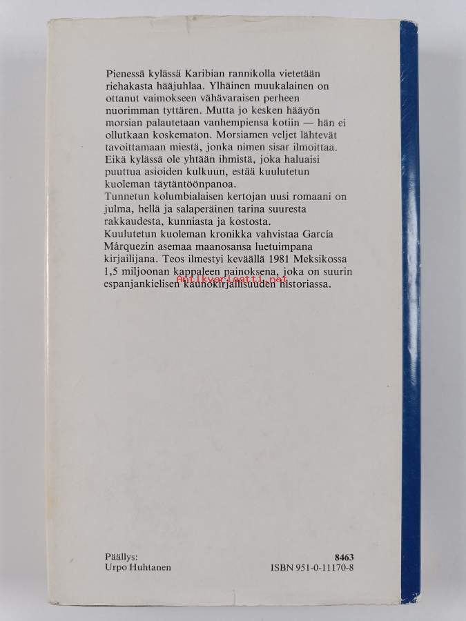 Muu(t) tekijä(t): Matti BrotherusMerkinnät: omistajamerkintäSarja: Aikamme kertojiaAlkuteos: Cronica de una muerte anunciada