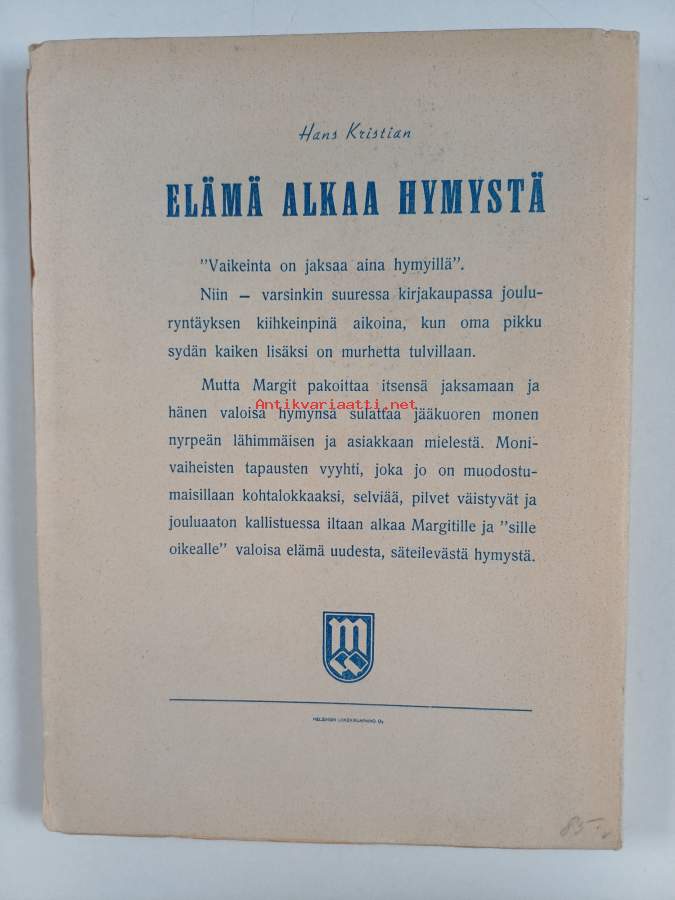 Hyvä. Tarkempi kuntoluokka: K3- ; Hieman nuhruisuutta, selkämyksessä hieman vinoutta, selkämyksessä lukutaittumaa, kansien reunoilla taittumaa ja rispaantumaa (koska ohuehkot kannet sivuja leveämmät)