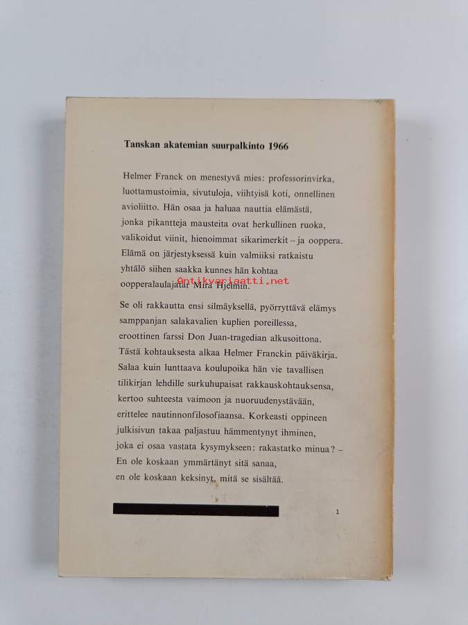 Hyvä. Hieman kulumaa kansissa, selkämyksessä hieman vinoutta, selkämyksessä lukutaittumaa
